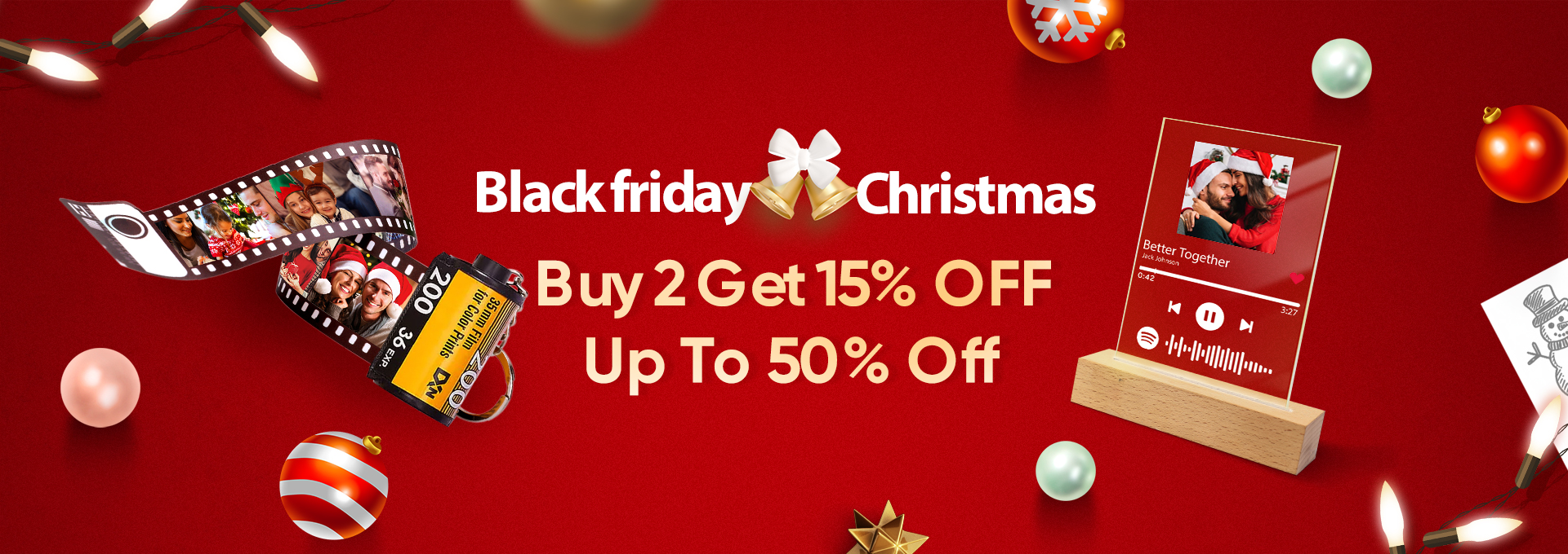 Custom Christmas Themed Music Fridge Magnets With Couple Photos Engravings And Dates For Her -