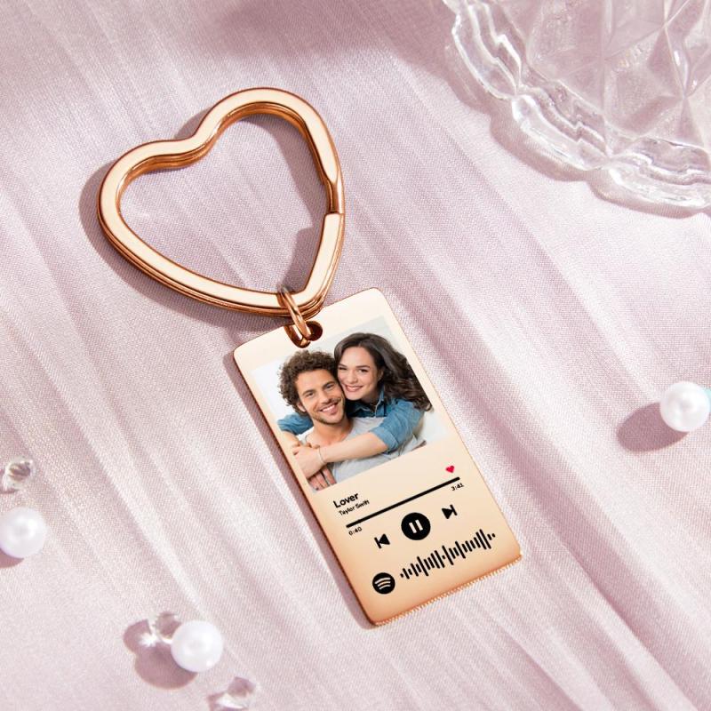 Custom Spotify Keychain Custom Photo Keychain Heart Ring Custom Gifts