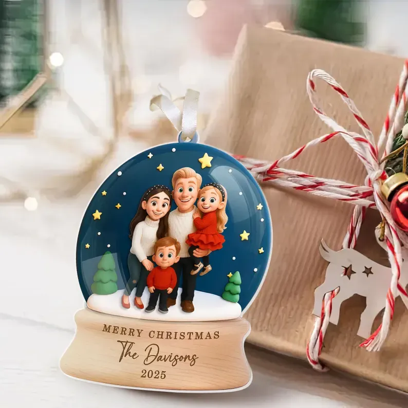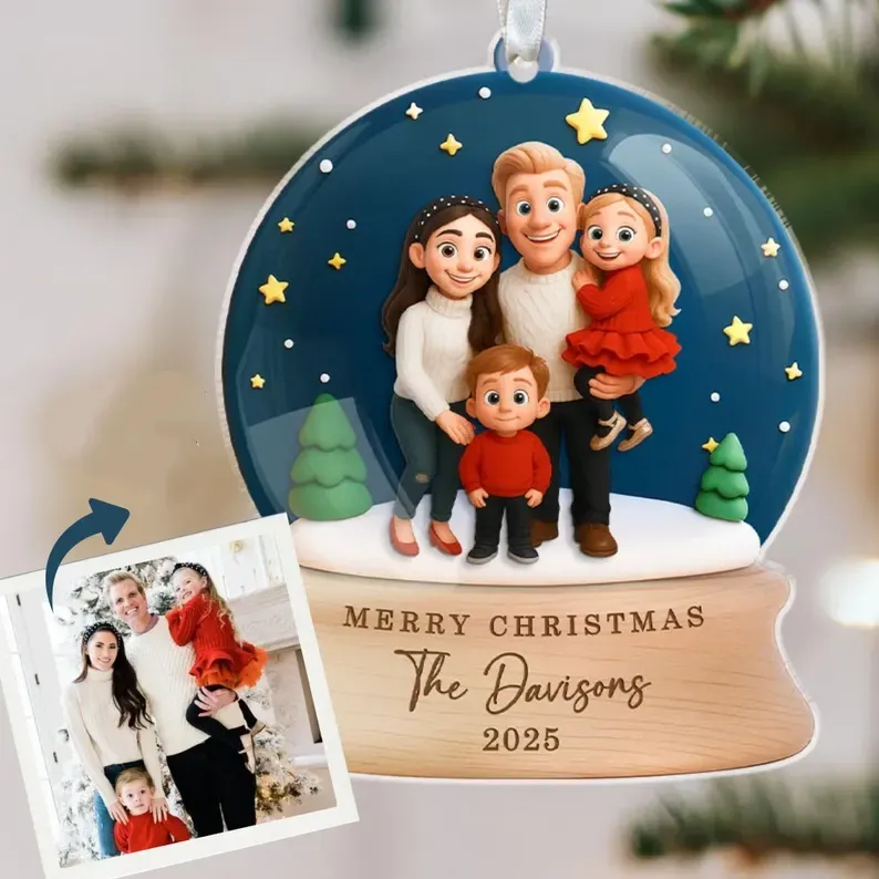 Custom Cartoon Family Photo Christmas Ornament, Best Christmas GIft for Family, Lover, Husband, WIfe