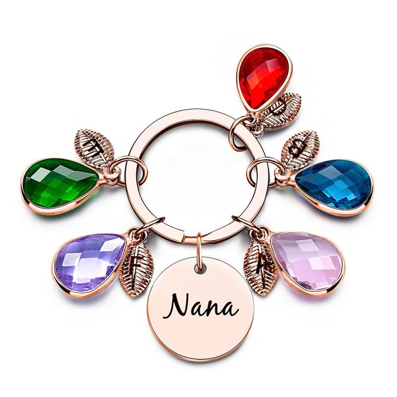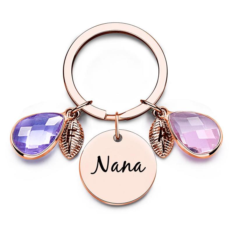 Custom Engraved Birthstone Keychain Leaf Delicate Gifts