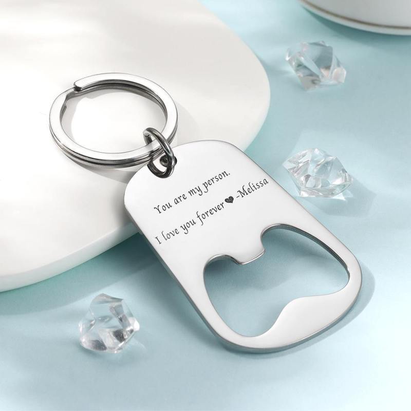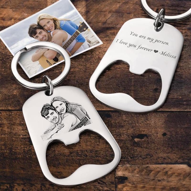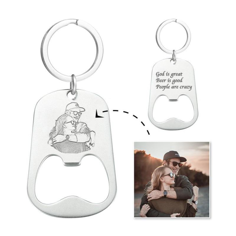 Custom Engraved Couple Photo Keychain For Lover Memorial Gift With Bottle Opener