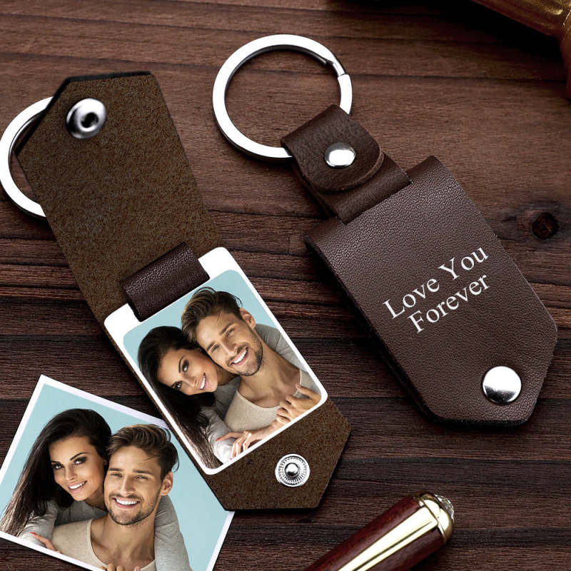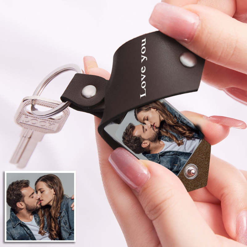 Custom Engraved Leather Photo Keychain Gift With Leather Case Gifts for Christmas Day