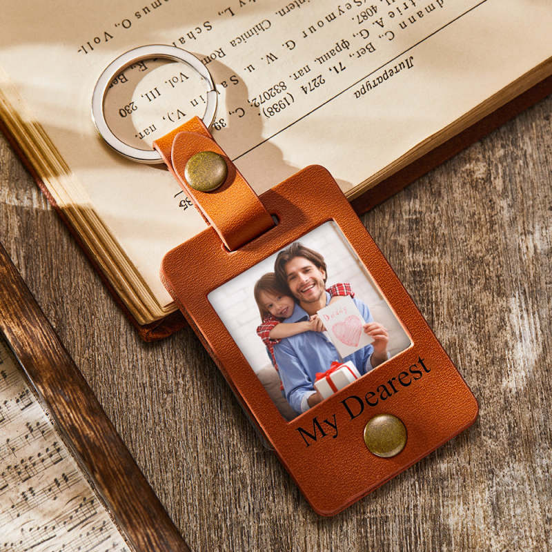 Custom Engraved Photo Leather Keychain Mini Photo Album Keychain Gift for Dad