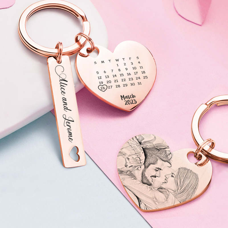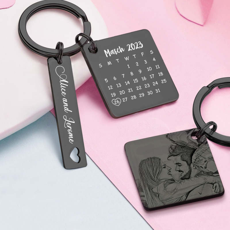 Custom Photo Calendar Keychain Personalized Save The Date Keychain Gift for Fathers Day
