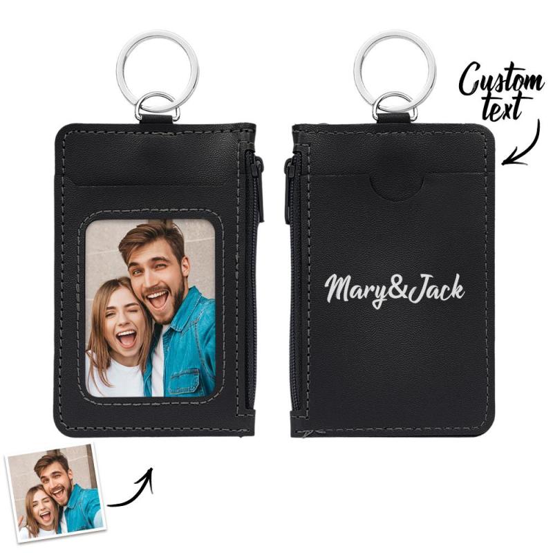 Custom Photo Engraved Keychain Leather Card Holder Creative Christmas Day Gifts