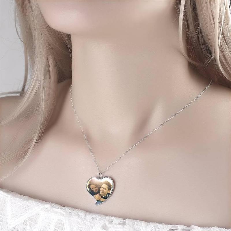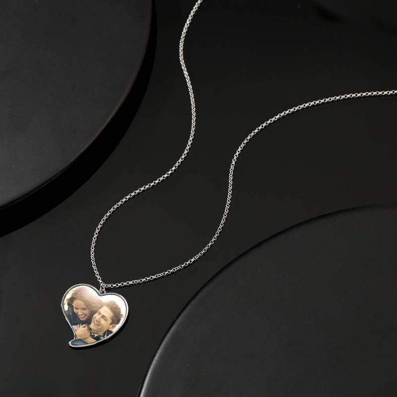 Custom Photo Necklace Silver Stainless Steel Engraved Heart For Love