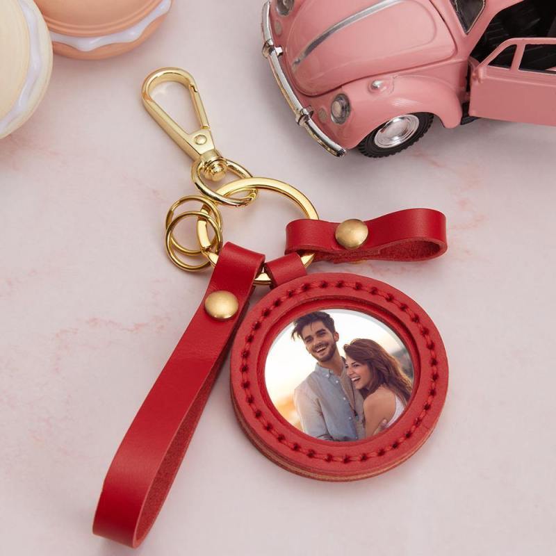 Custom Photo Keychain Personalized Colorful Photo Leather Keyring Anniversary Gift