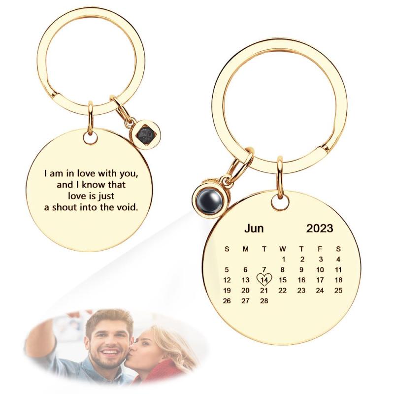 Custom Photo Projection Keychain Personalized Calendar with Text Key Ring