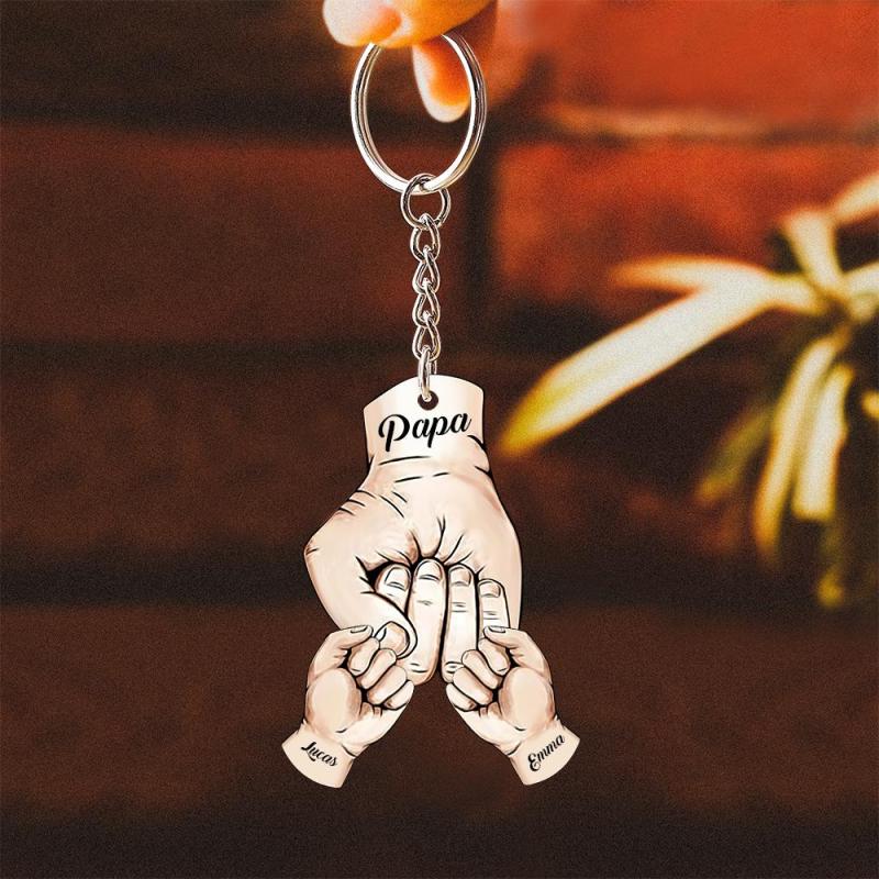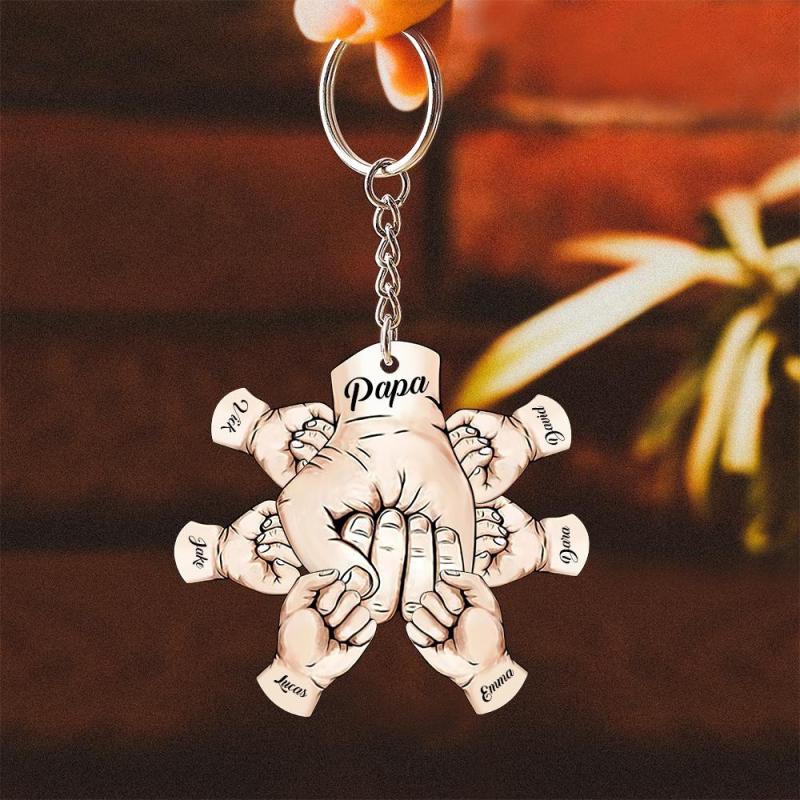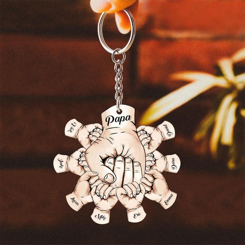Custom Words Engraved Hand Shaped Keychain For Father's Day Holding Hands