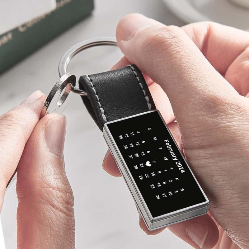 Customized Calendar Date Leather Keychain With Engraved Text Valentine Exclusive Gift For Men