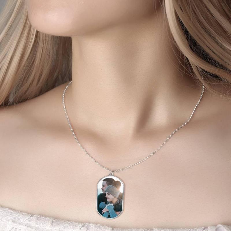 Engraved Couple Photo Tag Necklace Silver Gift For Love