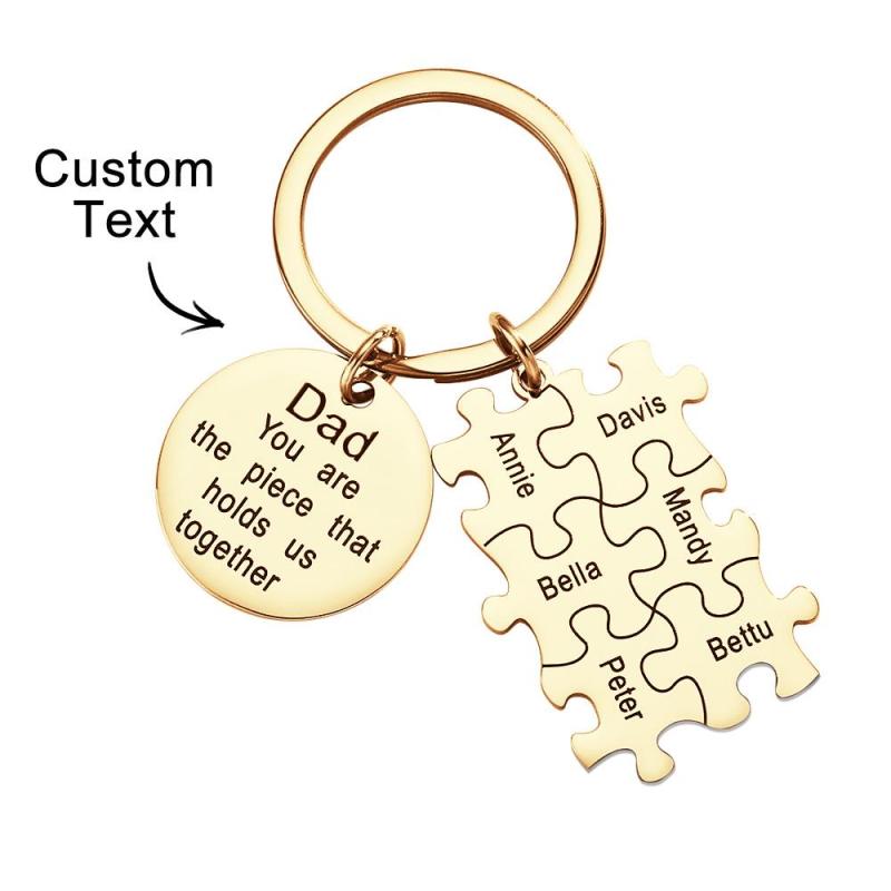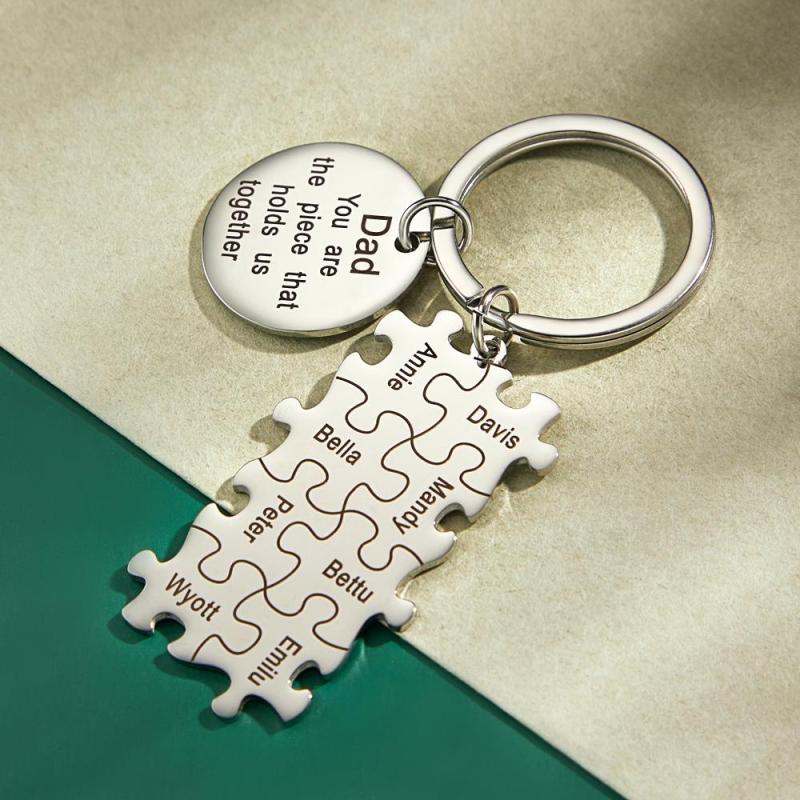 Engraved Puzzle Circle Keychain Personalized Key Ring Father's Day Gift