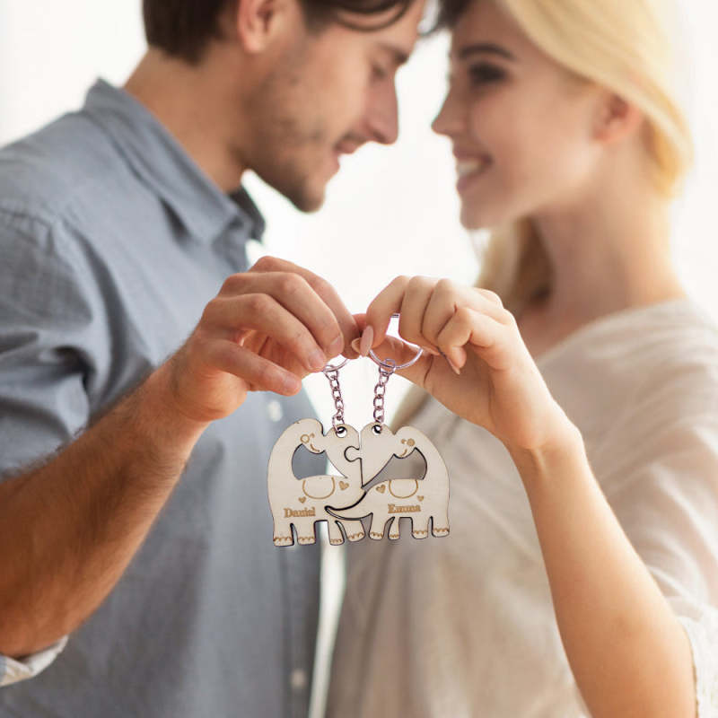 Personalized Couple Matching Wooden Keychain Custom Matching Dinosaurs Keychain Valentine's Day Gifts for Lover