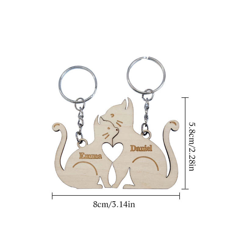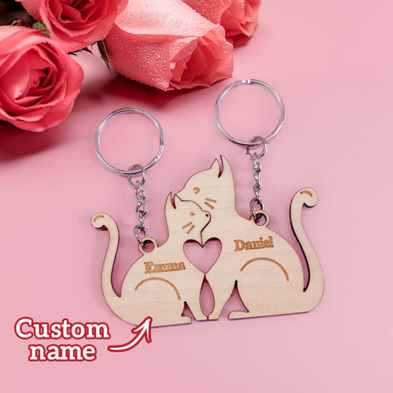 Personalized Couple Matching Wooden Keychain Custom Matching Hug Cats Keychain Valentine's Day Gifts for Lover