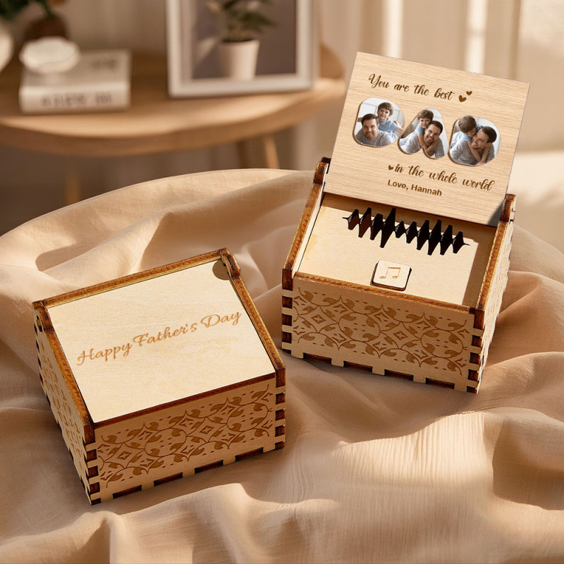 Personalized Father's Day Gift, Wooden Music Box with Custom Song, Voice or Tune, Father Gift, Photo Gift with Text, Grandpa Gift