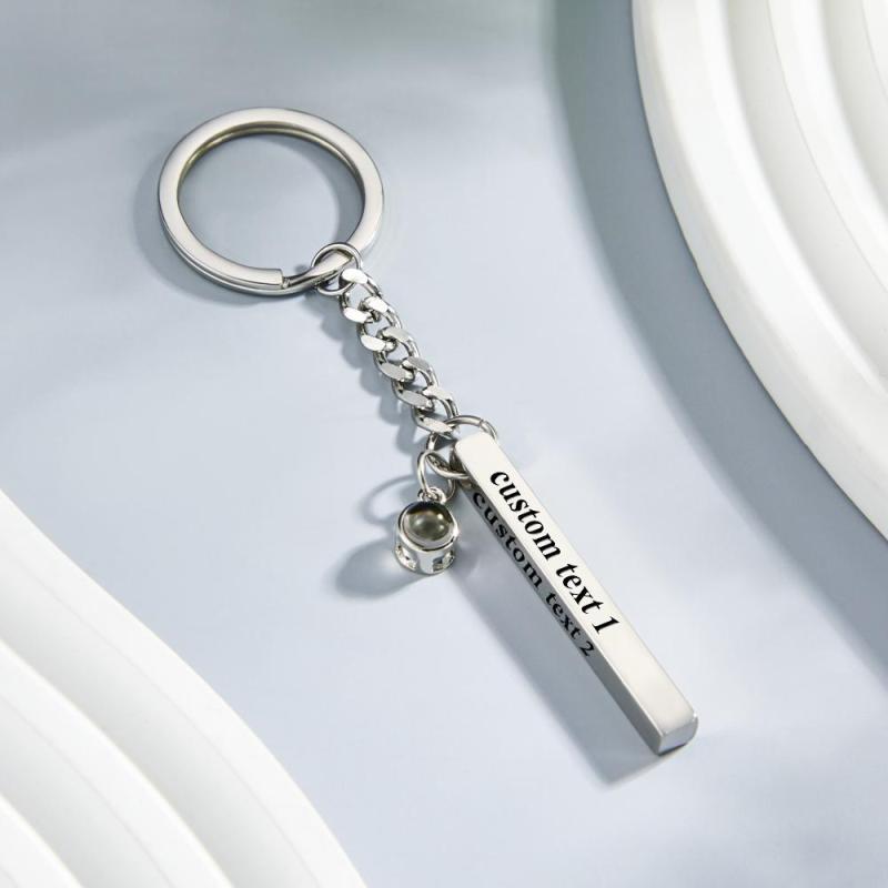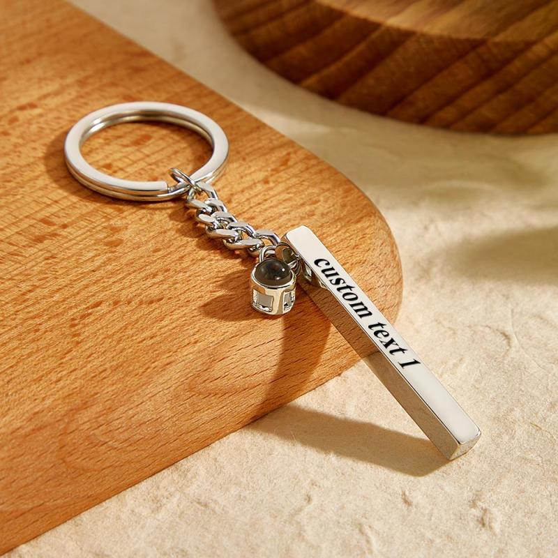 Personalized Photo Projection Keychain Engraved Vertical Cube Pendant Gifts For Him