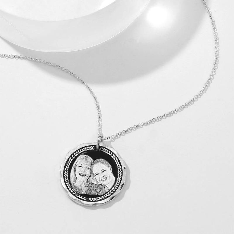 Personalized Round Engraved Photo Necklace Silver Retro Festival Gift
