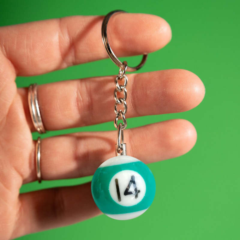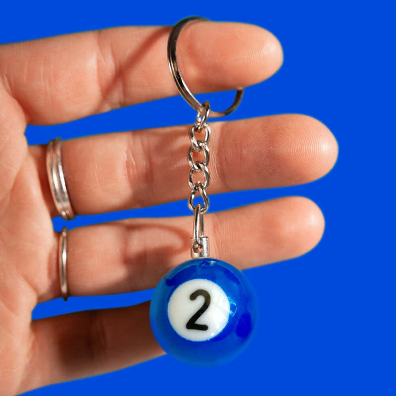 Pool Ball 8 Keychain, Miniature Real Billards Ball Keyring, Cute Fun Vintage Gifts for Him Her