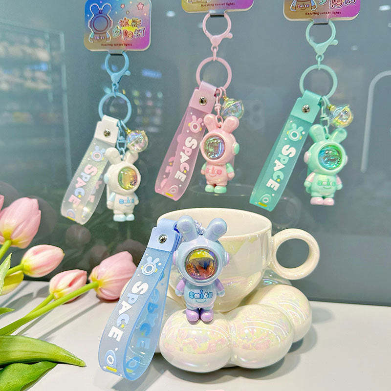 Rabbit Sunset Light Keychain Colorful Rabbit Sunset Atmosphere Car Bag Ornament